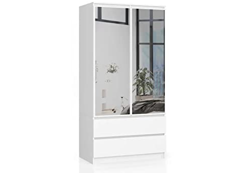 BDW Armoire 2 portes 2 tiroirs 2 miroirs pour chambre à couc...