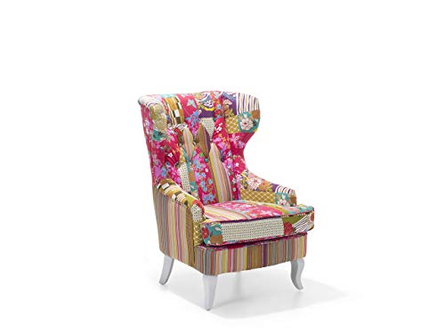Fauteuil Style Bergère en Tissu Patchwork Multicolore Pieds...