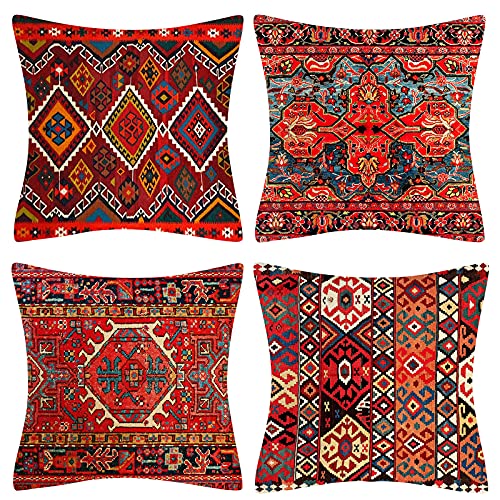 Housse de Coussin Tapis Imprimée Motif Bohême 40x40 Rouge