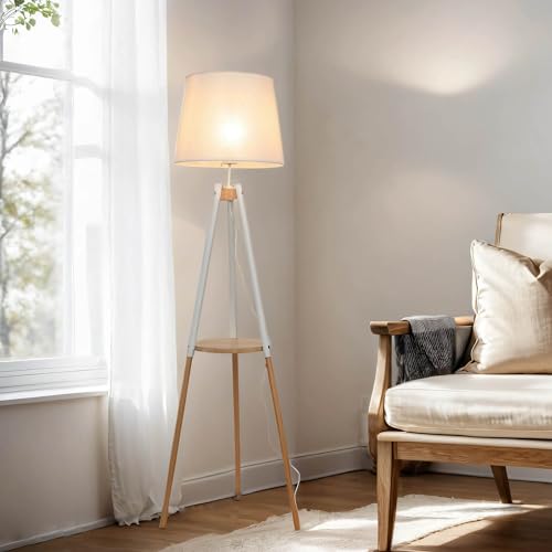 Lampadaire bois tissu blanc salon 148 cm E27 max 60 VAIO