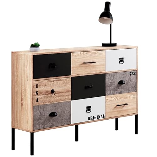 IDMarket Commode 6 Tiroirs Sacramento Design Industriel