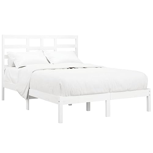 VidaXL Cadre à Lattes Lit Double Bois Massif de Pin Blanc 14...