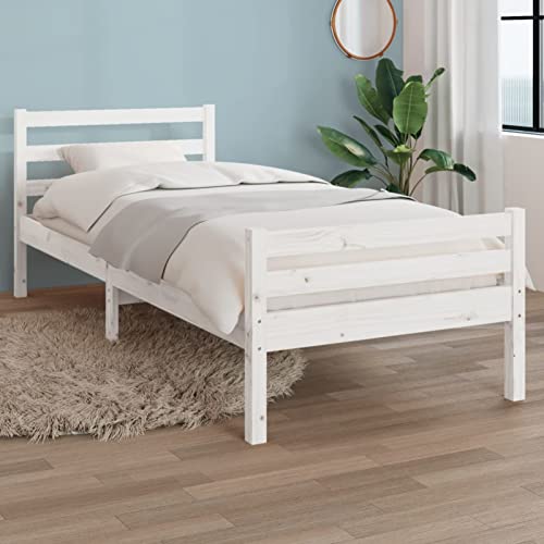 XL Cadre à Lattes Lit Simple Bois Massif de Pin Blanc 90x200...