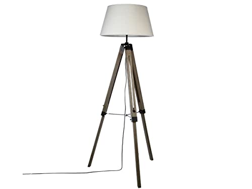Lampadaire Nautique Industriel Trépied Bois, Design Moderne