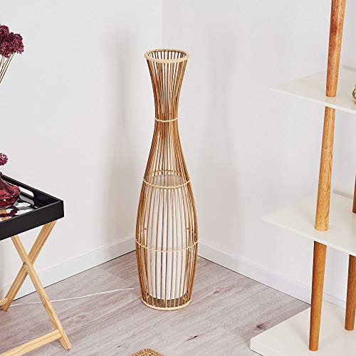 Lampadaire Saranda, lampadaire boho bambou/soie blanc, Ø 18...
