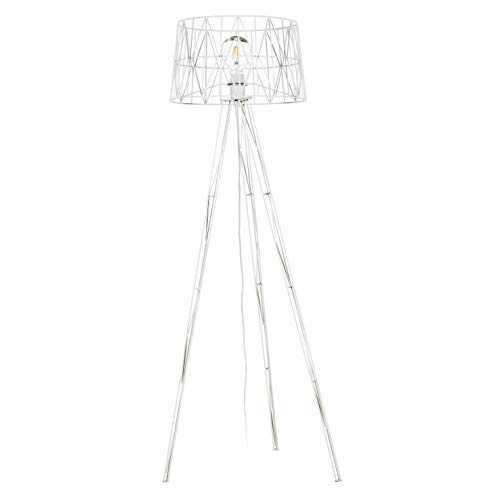 Lampadaire Trépied Design E27 Métal Textile Blanc Argenté