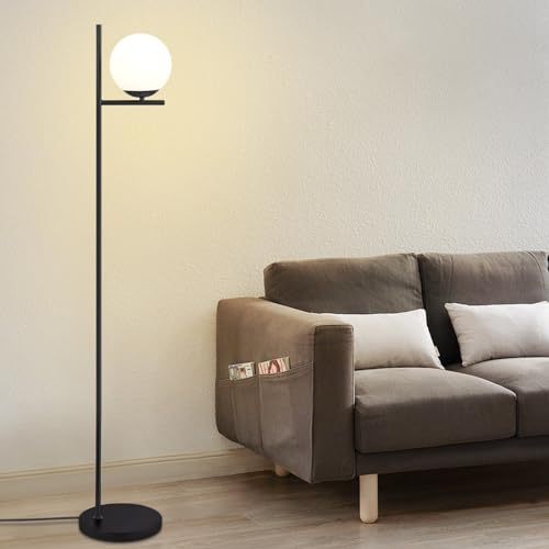 ZMH Lampadaire Industriel Noir Moderne E27 Blanc Verre