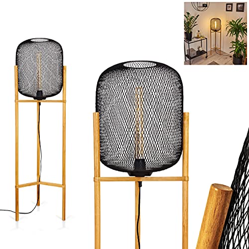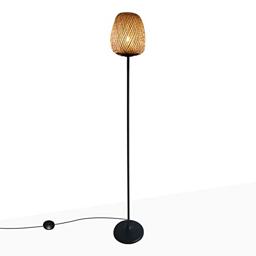 LED Barcelona Lampadaire Osier Bambou Vintage Noir