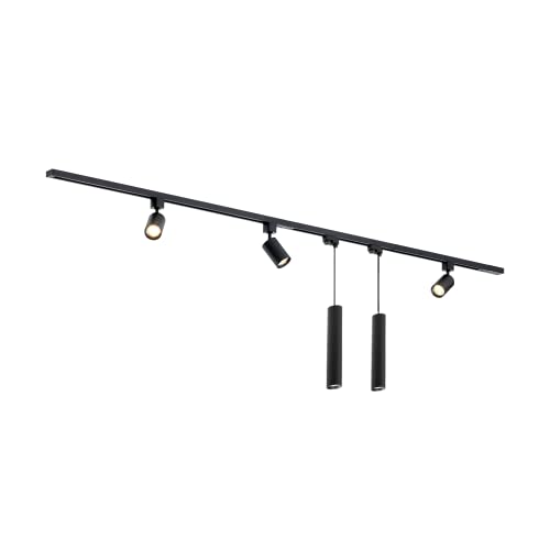 Qub Focus III - Plafonnier 3 Spots & 2 Lampes Suspendues Noi...