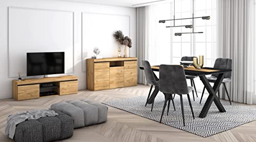 Skraut Meubles Salon - Table TV 140 Bicolore, Pieds X 6, Chê...