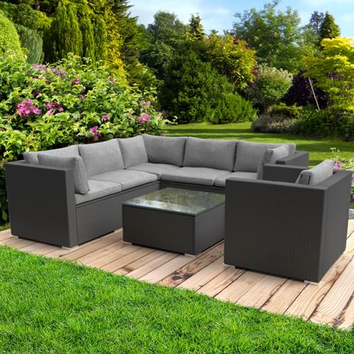 Brast Salon de Jardin Extérieur 5-6 Places Rotin Tressé Alu...