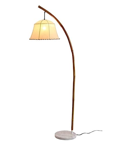 Moderne lampadaire bambou salon abat-jour en tissu marbre