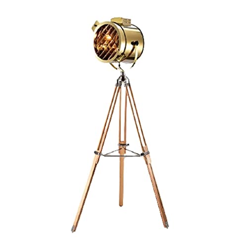 Lampes sur pied Abat-jour acier inoxydable, trépied bois, la...