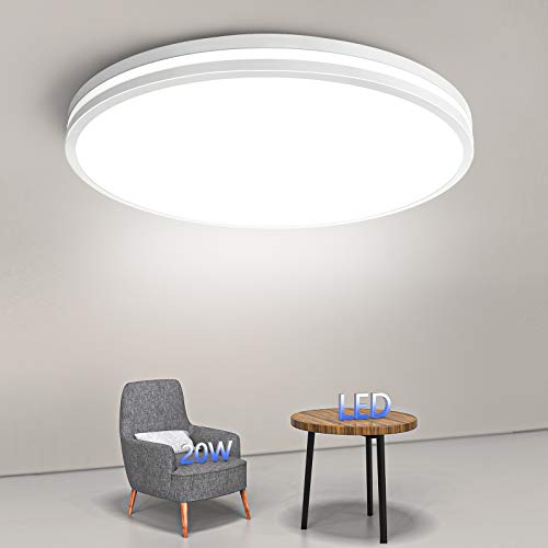 Air and Plafonnier LED Bain 20W, LED Rond 4000K, Blanc Natur...