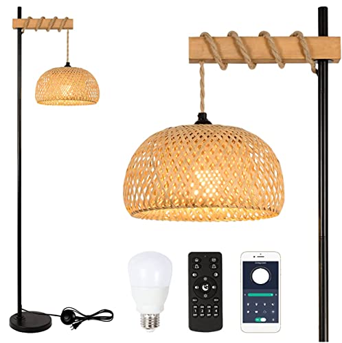 ?【Lampe sur pied Boho en bambou】 Abat-jour en bambou 100\\...