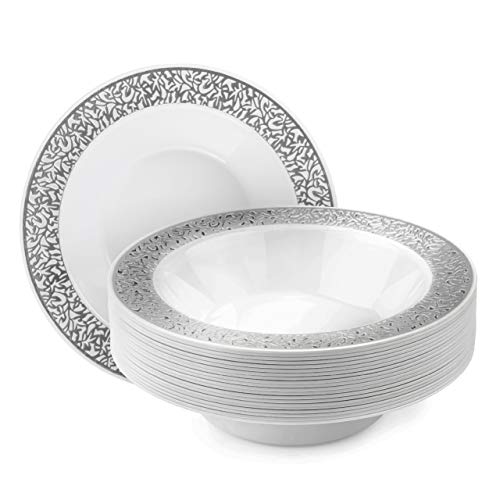 MATANA 20 Bols Argentés Plastiques, Assiette Creuse