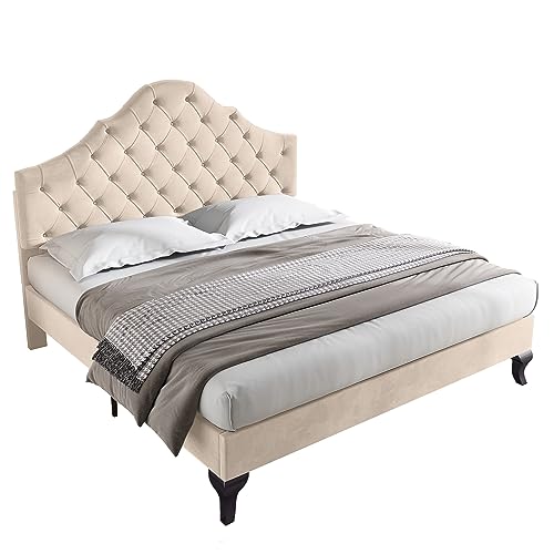 VSOGA Lit Capitonné 140x190 cm - Sommier à lattes, tête régl...