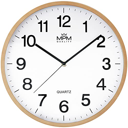MPM Quality Horloge murale imitation bois, cadre en plastiqu...