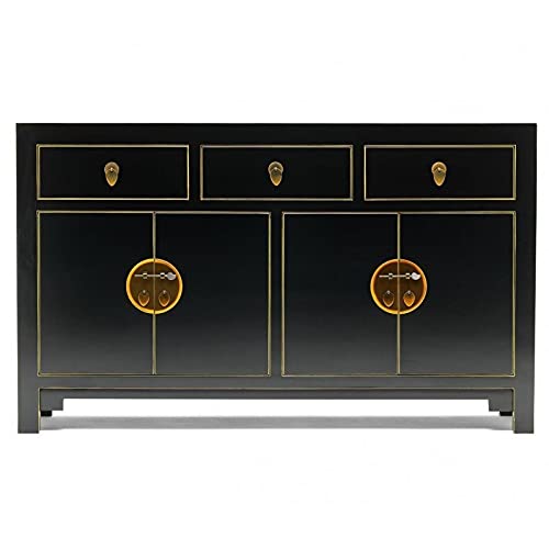 A. Industrie Buffet Oriental en bois massif floral noir doré...