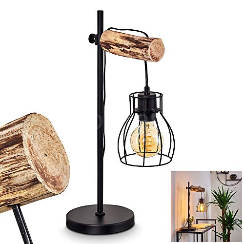 Eglo Vintage Lampe de Chevet en Acier Noir et Bois Naturel
