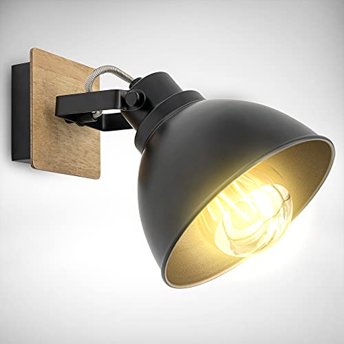Lampes murales rétro pivotantes en bois et métal noir et or...