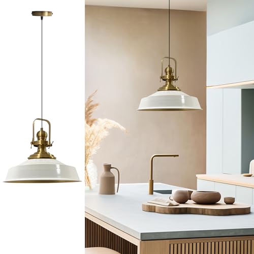 Luminaire Suspension Industriel Rétro Metal 41cm, Blanc Vint...