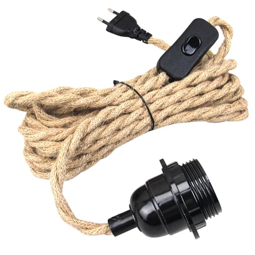 Lustre Corde Chanvre 4.5m, Douille E27, Ampoule Fil, Suspens...