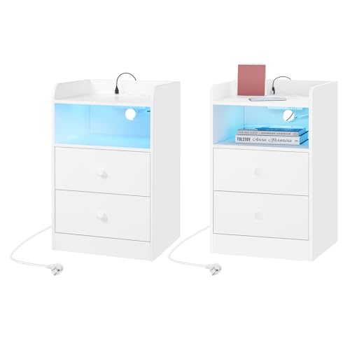Woltu 2Tables de Chevet avec Station Charge, Prises et Ports...