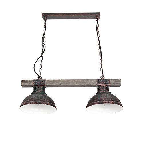 Licht-Erlebnisse Suspension bois métal cuivre antique 60cm E...