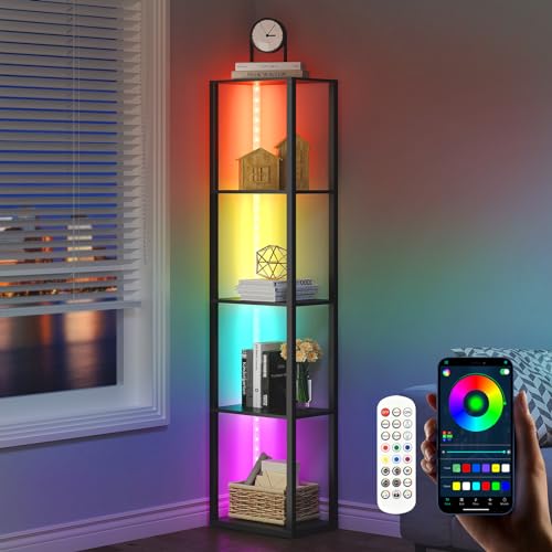 YITAHOME Bibliothèque d''angle à 5 étages avec lumières colo...