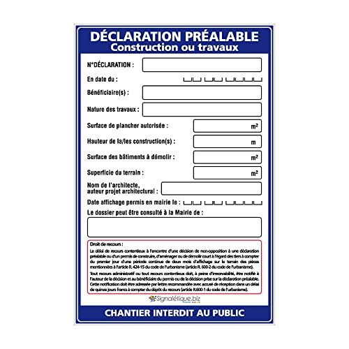 PANNEAU DÉCLARATION PRÉALABLE CONSTRUCTION OU TRAVAUX : Une...