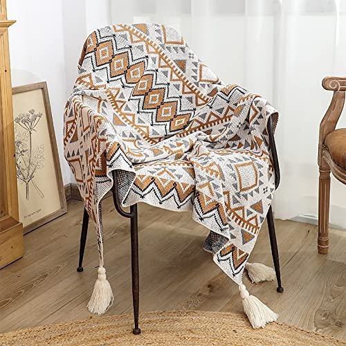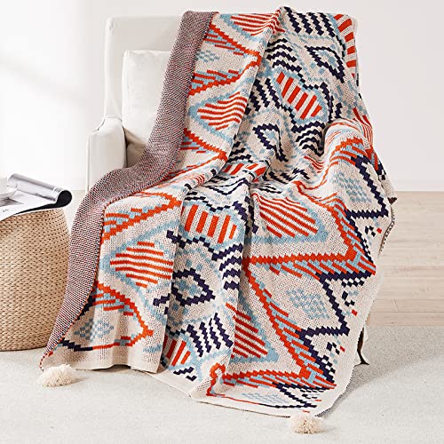 LumiSyne Couverture Tricotée Gland Vintage Style Ethnique Bo...