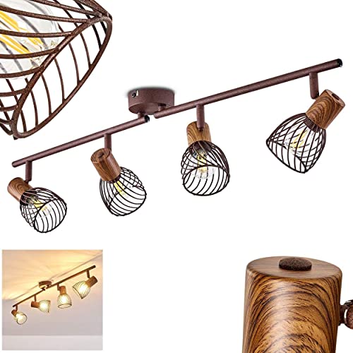 Plafonnier Arjen, lampe de plafond en métal/bois en rouille/...