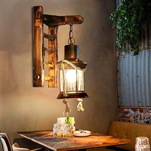 Rétro Murale Appli En Bois E27 Industrielle Chanvre Abat-Jou...