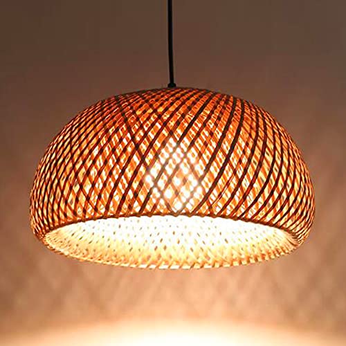 Lampe Suspension Bambou E27 Suspension Rotin Naturel Abat-Jo...