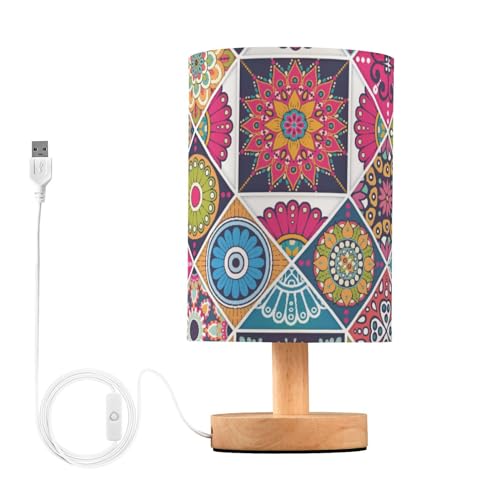 Lampe de chevet mandala florale, table de chevet avec abat-j...