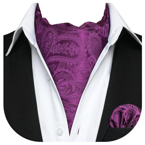HISDERN Ascot Cravate Violet Mouchoir Mariage Élégant Cachem...