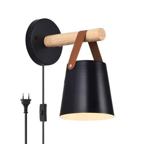ELINKUME Murale LED E27, Interrupteur, Bois et Cuir