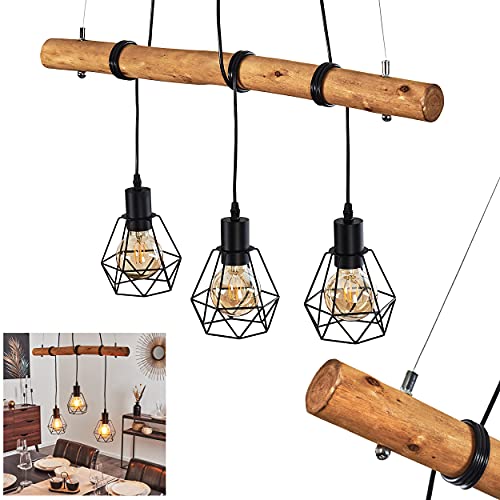 Suspension Seegaard en bois et métal noir, élégante lampe pe...
