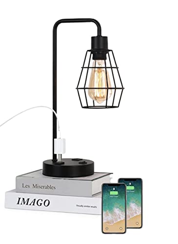 Lampe de chevet, 2 ports USB, abat-jour métal givré, lampes...