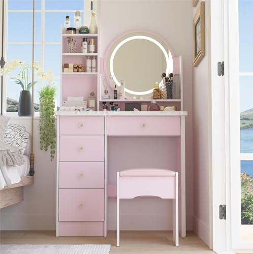 PREMTURE Coiffeuse d''angle avec éclairage et 5 tiroirs, mir...
