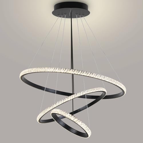 【Lustre noir moderne】 : Ce lustre en cristal noir a été cr...