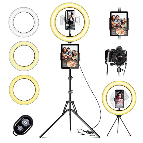 LED Ring Light avec Trépied, 10\" Anneau Lumière Bluetooth,...