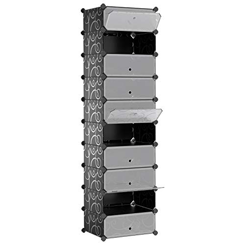Armoire à chaussures 10 couches, étagère rangement, noir LPC...
