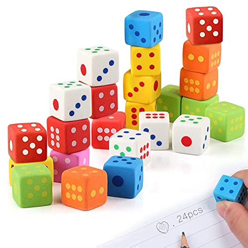 Gomme à dés, 24 gommes colorées, forme dé, dessin, effaçable...