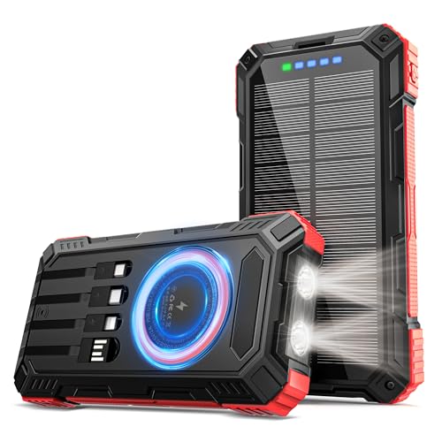 【4 Câbles Intégrés】Le power bank solaire possède 3 câbles...