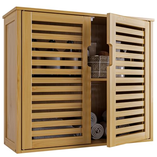 HITNET Armoire Bain Bambou Pharmacie Double Portes Étagères...