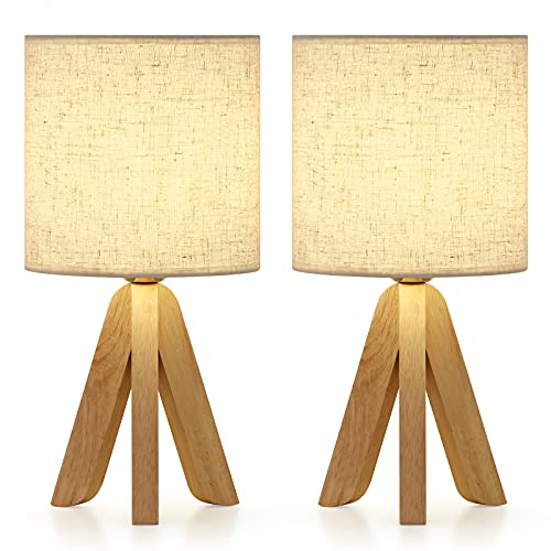 Lot de 2 lampes de chevet en bois et lin, ambiance chaleureu...