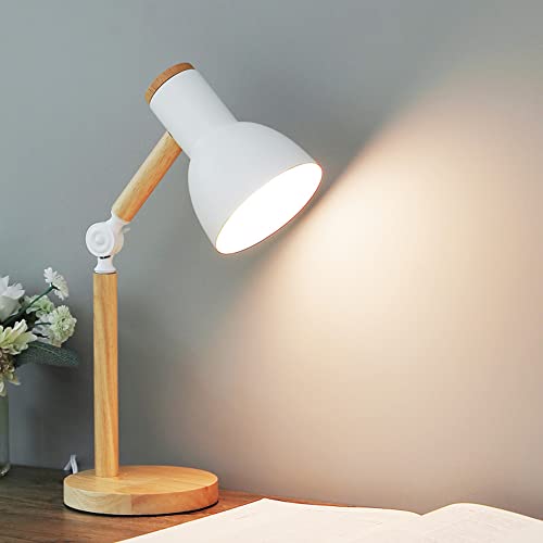 Xindaxin Lampe de Bureau Métal Bois Réglable Blanc