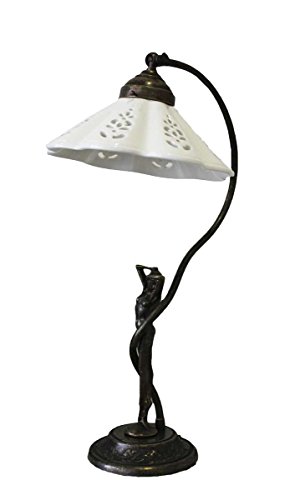 Lampe de bureau laiton brun, abat-jour céramique ajourée